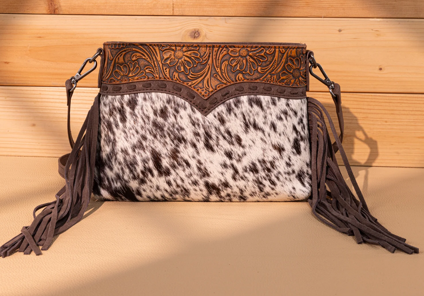Trinity Ranch Floral Tooled Hair-On Cowhide Crossbody - Coffee