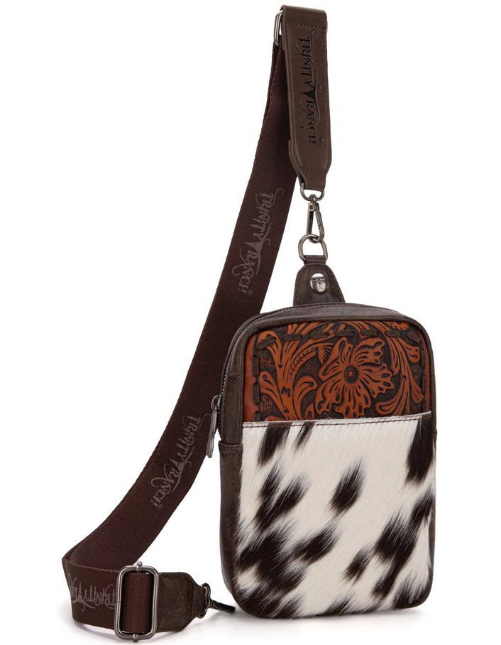 Trinity Ranch Genuine Hair-On Cowhide Tooled Sling Bag